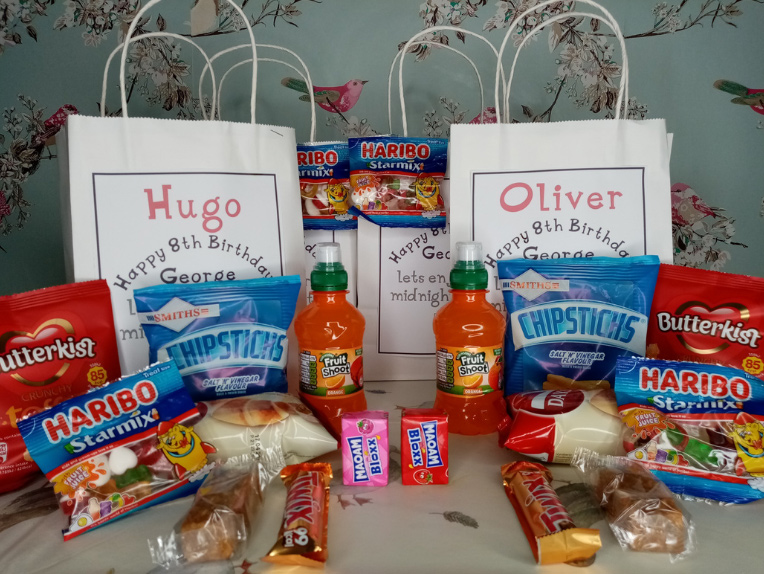 Undecided what to get the kids for their treats? Why not let us solve the solution and put a combination of snacks into a personalised party bags. We can adapt to dietary needs, however you must tell us of any allergies or preferences, so we bespoke the bags. All bags will come personalised with the names, birthday child, and birthday themes on the bags.