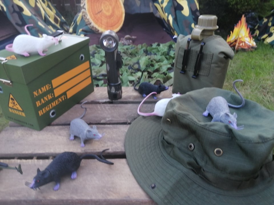 Tell stories, play games until you soldier’s can’t stay awake any longer. Lights out, torches on!